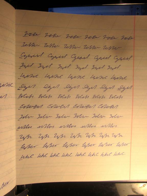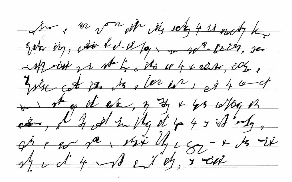 Я сейчас не говорю, о том, что при написании по моему варианту скорописи для увеличения скорости письма можно некоторые гласные не писать, при этом прочтение написанного не так уж затрудняется.