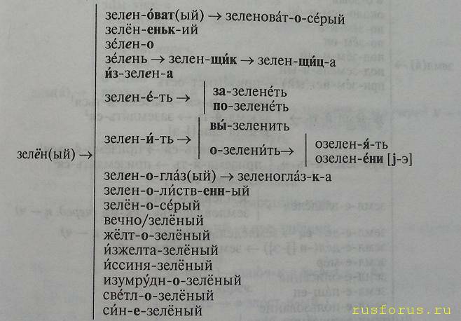Тихонов рассматривал "гнёзда", поэтому зелён - это гнездо слов образованных от слова зелёный.