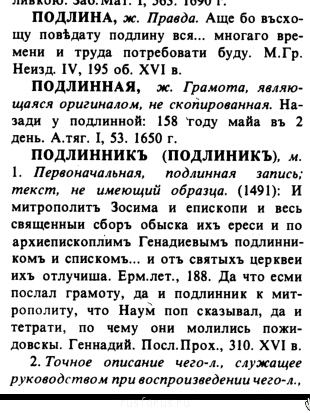 Несколько дней назад возник этот вопрос на Хэшкоде, я принял участие, а затем инициировал обсуждение на Лингвофоруме. Попутно перерыл все доступные словари : от Берынды, Поликарпова, САР, Срезневского и многих других - до современных научных типа СлРЯ 11-17 вв и СлДРЯ 11-14 вв. Даю ссылку на Лингво :