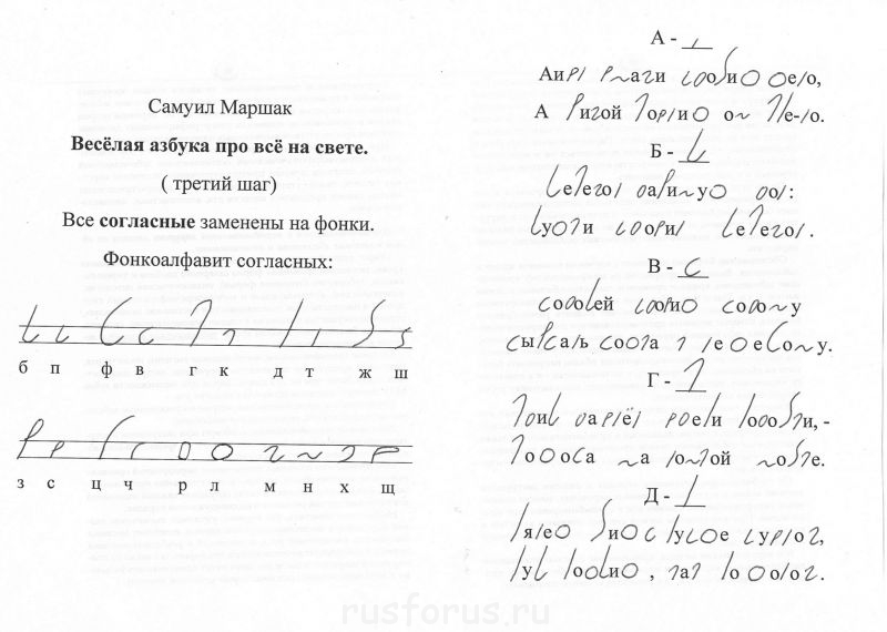 В дальнейшем будет представлена ПРОСТАЯ ФОНКОВАЯ запись этого стихотворения, где ВСЕ буквы ( и гласные и согласные) будут заменены на ПРОСТЫЕ фонки.
