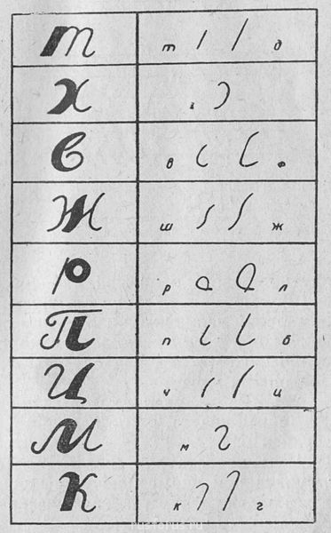 "Скоропись по БТ-1" должна быть, по возможности, похожа на обыкновенное письмо, но значительно более скоростное.