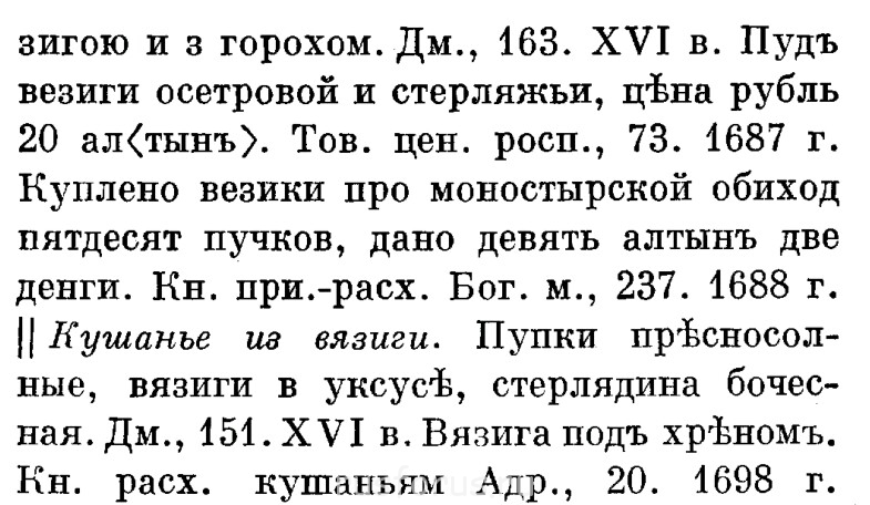 Статья из Словаря 1847, вязига трактуется как связанные на продажу пучки сухожилий красной рыбы. Статья из САР 1789-94, то же самое.