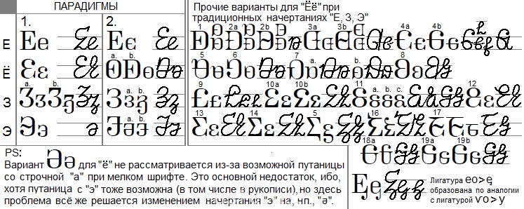Недостатки букв реализуемых графемами неизменной формы: "Ё, Йй, Р, У, Ф, Шш, Щщ, ъ, Ыы, Юю", проявляются во всех распространённых шрифтах, т. е. "относятся к азбуке".