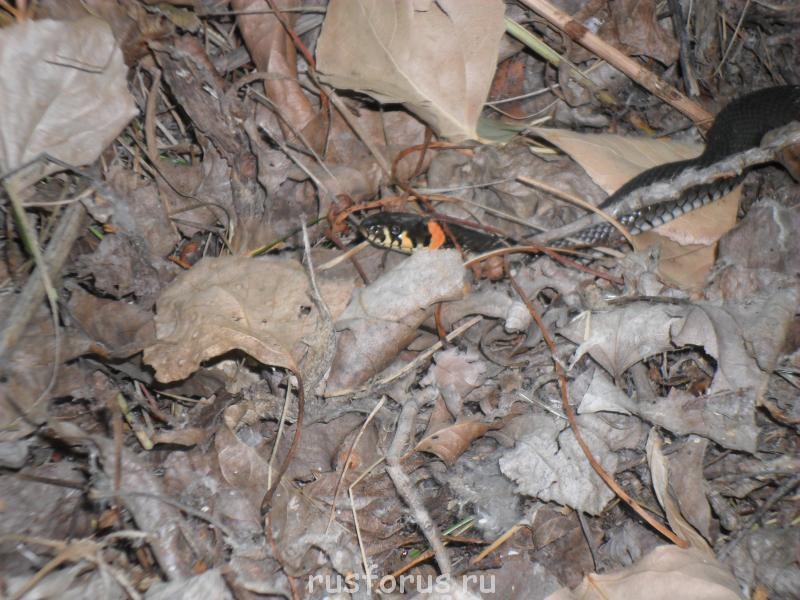 Ага. Ужик. Всего-то сантиметров двадцати длиной. Уж и не знаю, как он перезимует?... Долго ждал, что бы он головку свою показал, но так и не дождался. Зато его родитель попозировал(а) во всей красе.