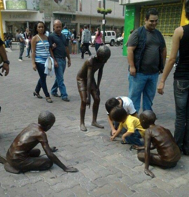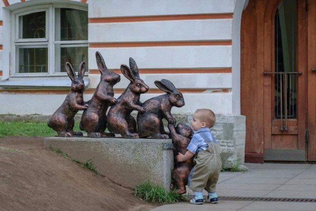 Есть памятники памяти жертвам, которые олицетворяют жизнь, героизм и мужество, вот лазание какими-нибудь детьми для фото по таким памятникам мной может восприниматься достаточно красивым жестом, получаются замечательные фотографии.