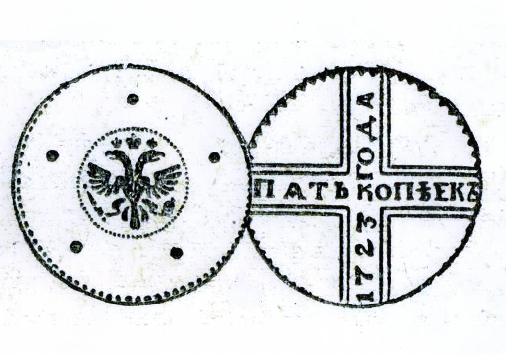 "Последними из не получивших доверия народа монет будут уничтожены "крестовые" пятаки. Сами того не ведая, мы до сих пор их помним. "Орел или решка?". Решка, то есть решетка - так называли крест на его оборотной стороне." Стр.54.