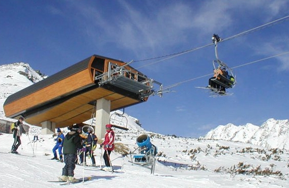 Упрямо тащит слаломистов.