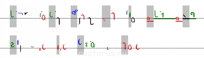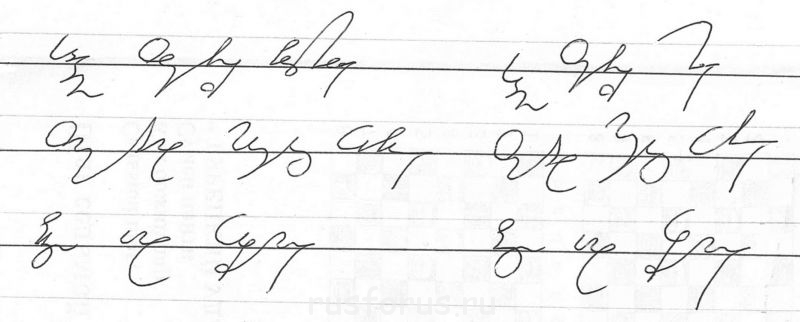 Всё прибуквенные (даже слуховые при том скорописи) за десятилетия с момента "высадки в грунт" (1933 год) не стали ничем. Шесть тысяч интернет-ресурсов только на ГЕСС. И никакой жизни! Не нужен навоз! Выбор - в пользу самопальщины! Причина в том, что не отображают ни ФОНЕМНУЮ изменчивость, ни ударность (а она ГУЛЯЕТ в РЯ), ни одна БУКВЕННАЯ система. Ну и какой смысл "делать своей" то, что требует ЗУБРЁЖКИ? От выбора отвращает уже сам факт предложения осваивать скоропись. Путают выборщики скорФОграфию со стенографиями. Способствует этому и ваше мнение: надо вводить в нотную (по правилу Терне) ГРАМОТУ ещё дополнительные значки для ГЛАСНЫХ. А не надо! Это - возврат к стенографизму! Читатели, Вы посмотрите что представляют из себя "лепёшки" по БТ-1. Из них невозможно составить знак ФРАЗГРАММЫ! Не случайно их выписывает РАЗДЕЛЬНОСЛОВНО - точно так, как пишут стенографисты.