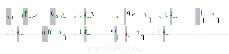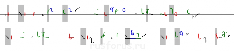Однако, в русском языке бывают случаи, когда ударная часть слова представлена гласной-одиночкой (От,Он, Если, Этот) . В этом случае в "БТ-5" я применяется "значковое" обозначение УДАРНОЙ гласной, в то время, как послеударная часть слова опускается ПОД базовую линию. (это - основной принцип написания ударной части слова)