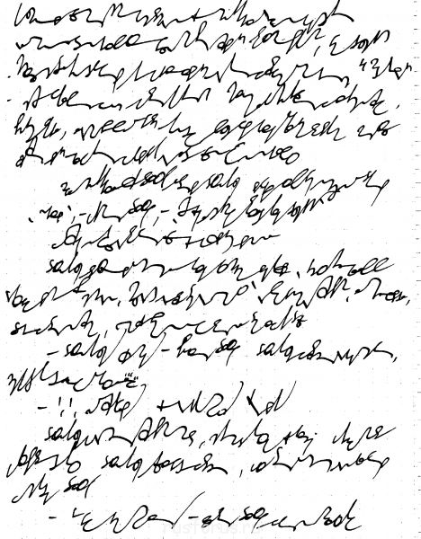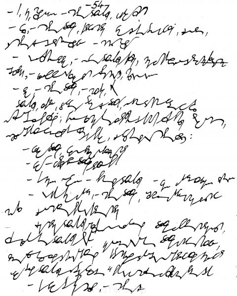 Так появляется раздельнословность в буквенности и СТЕНОГРАФИЗМЕ в записях Бориса. Для того, чтобы написать ВСЮ строку безпробельно, надо писать БЕЗОПОРНО. Кисть с "Коньком-горбунком" (=загнутый гвоздик) должна "парить в воздухе" - на расстоянии от листа бумаги равном толщине своей кисти. Можно даже первое время подставлять свою непишущую кисть под пишущую, прижимая ладонью защитный (от зажирновки) лист бумаги.