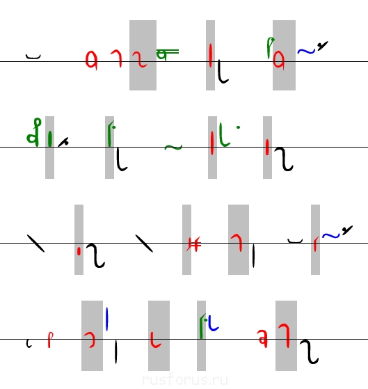 Таким образом, у нас получится, что все согласные фонки будут иметь одномерный или двумерный размер. (Полумерной "Р" не будет!)