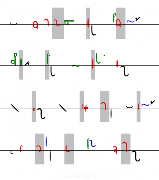 5. Фонки при написании должны ложиться одна около другой примерно на одном расстоянии.
