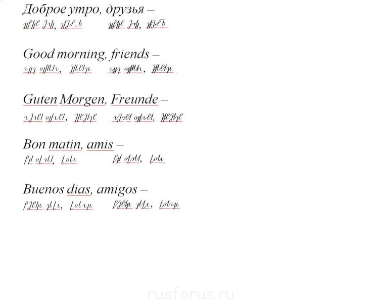 Здравствуйте, Фантазёр!Фантазёр:Вот примеры на английском, немецком, французском и испанском языках, выполненные в печатном и рукописном видах.