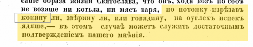 ИсточникНо уже в XIII веке конина расценивалась славянами, как пищевой суррогат, употребляемый в Новгороде в 1230 году.