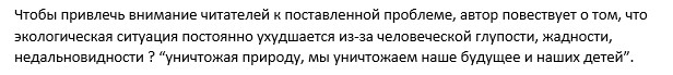 …автор повествует о том, что экологическая ситуация постоянно ухудшается из-за человеческой глупости, жадности, недальновидности (?) "уничтожая природу, мы уничтожаем наше будущее и наших детей".