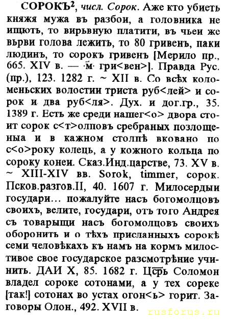 Значит, слово "сорок" не использовалось для обозначения числа "40".