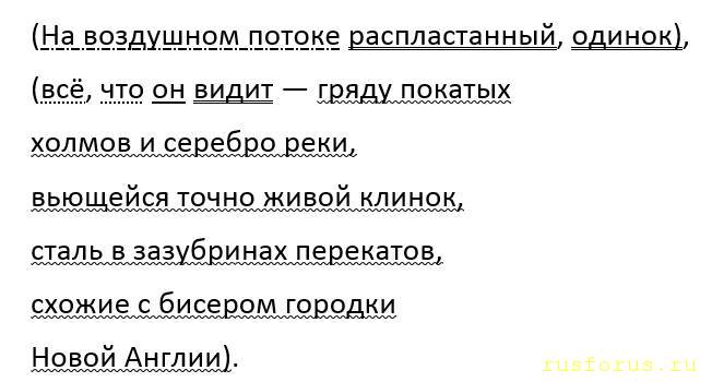 Я разобрал это предложение вот так:На воздушном потоке распластанный, одинок,