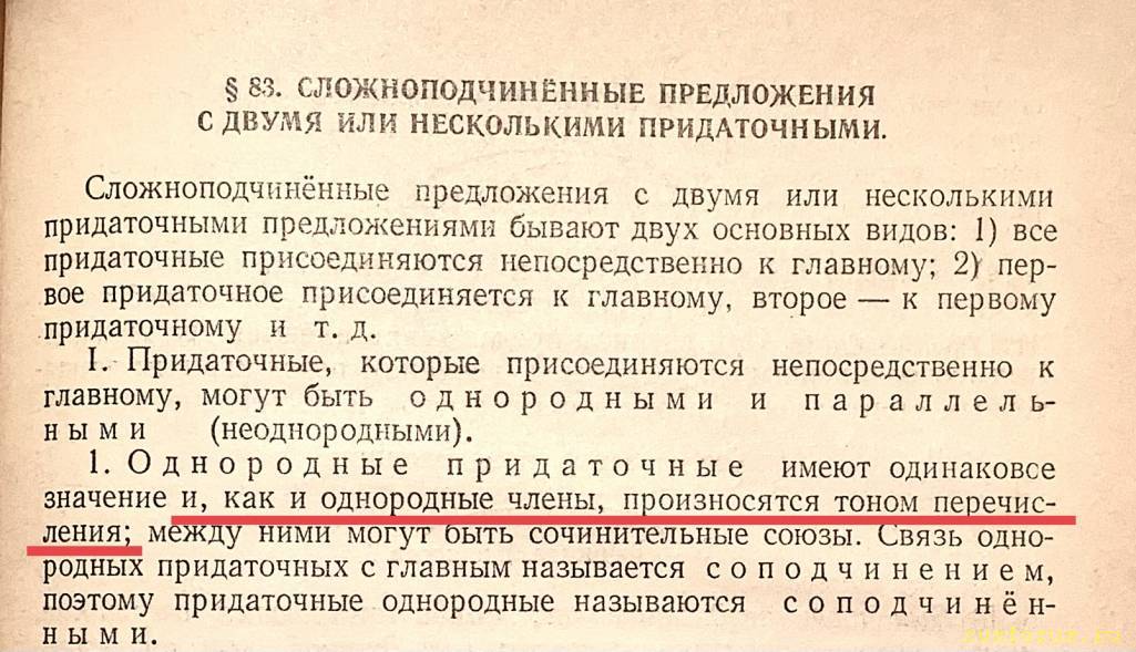 «Однородные придаточные всегда следуют одно за другим непосредственно».