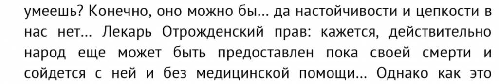 Лекарь Отрожденский прав: кажется, действительно народище может быть предоставлен пока своей смерти и сойдется с ней и без медицинской помощи...