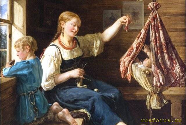 Кстати, не только крепостные, а и раньше (в докрепостные времена, и даже языческие), и позже. И только Октябрьская революция избавила от этого, введя декретный отпуск и воспитательные заведения для детей, в т.ч. ясли. А так и до сейчас встречается, только в рюкзачке и памперсах))