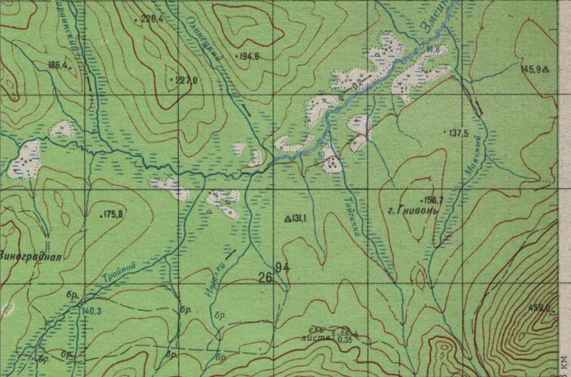 Я меня возникла следующая теория. Есть такое слово "завонь", означает "заводь" (от "за воднь"). Предполагаю, что механизм образования "гнивонь", такой же, что и в этом слове. "Гнивонь", по-моему, следует производить от "гниль + воднь", т.е. "гнилая вода". Тогда все становится на свои места. Определение "гнилой", как правило, используется в названиях болотистых, переувлажненных мест. А эта сопка Гнивонь как раз и находится среди болот.