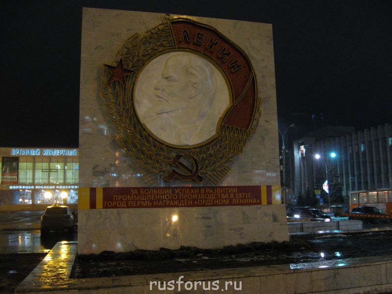 В 1971 году г.Пермь был награждён орденом Ленина, в связи с чем был установлен соответствующий монумент. В 2014 году монумент был перенесён в другое место в центре города и реставрирован, в частности, была сделана новая сопроводительная надпись, которая звучит так: