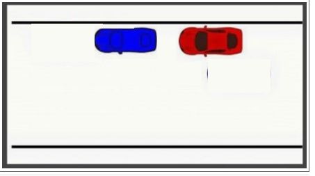Возле обочины стоит автомобиль (красный), наша (синий) задача припарковаться позади красного автомобиля.